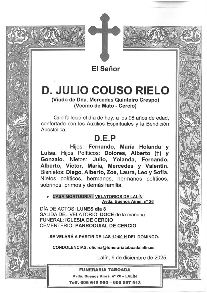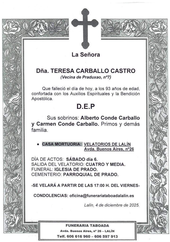 Desde Funeraria Taboada le ofreceremos todas las atenciones. Si nos necesita no dude en ponerse en contacto, trabajamos las 24 horas los 365 días del año.